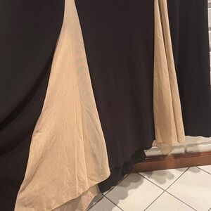 Illusion contrast panels adorned with silver caviar beads define your figure along the bodice and back while nude illusion inserts in the skirt give this a trumpet flare to complete the hourglass look. Stretch fabric makes this long floor-length dress as flattering as it is comfortable.