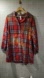 3.) Description; This shirt is soft to the touch, button up, buttons are colored, plaid with a yellow splash distressed look to it, front chest pocket, piping around sleeve cuffs, around the neckline, and along the front. Pleating on the upper back of the nightshirt. Pre-loved, in great condition, has been worn but still has many more miles to go! Cozy, soft! No side pockets or side slits. Made very well!