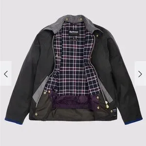 Any sale above $500 gets authenticated by Poshmark Waxed jacket with tartan lining in collaboration with Barbour.