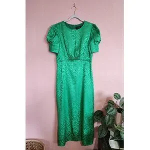 SALONI 100% Silk Green Bianca Midi Dress NWT Size 10