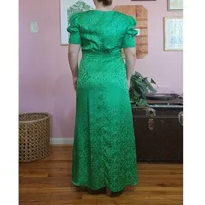I truly love this beautiful and luxurious emerald green silk SALONI Bianca dress. The color is so vibrant and the silhouette really gives vintage, Hollywood regency vibes! I bought it new with tags from Thread Up and then never wore it. I have only tried it on twice, once when I purchased it and once again for these photos.