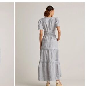 EUC Quince size xs Blue and White Striped Linen Maxi Dress
