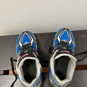 Stylish and comfortable, these New Balance kids' sneakers feature a vibrant blue and yellow design. Perfect for active play and everyday wear.