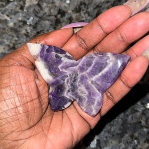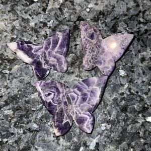 SET OF 3! Beautiful dream amethyst butterfly-shaped gemstone decor. Perfect for home or office. Palm size.