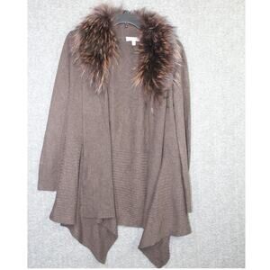 Neiman Marcus Cashmere Brown Cardigan Fox Fur Detachable Collar Size Small