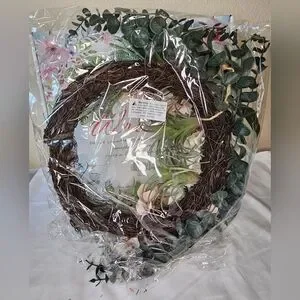 Faux Floral Wreath with Cream and Pink Accents NIB