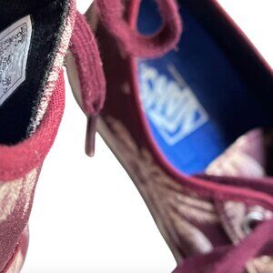 The Vans Aldrich SF Los Psychos Port Royale 2 Mens 9.5 shoe is a stylish and lightweight sneaker perfect for casual occasions during the summer, fall, or spring seasons. The low-top design features a lace-up closure and a red color with a palm tree pattern, reflecting a nature, beach, and Hawaiian theme. Made of canvas and foam insole material, this athletic shoe is ideal for walking, school, or skateboarding activities. With a rubber outsole, this Vans model combines comfort and style for men looking for a unique and trendy footwear option.