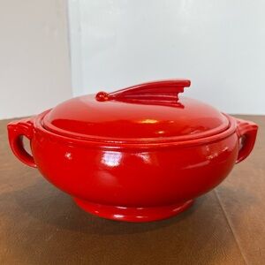 Rare Vintage Hall Sundial Lid Covered Casserole Dish in Chinese Red