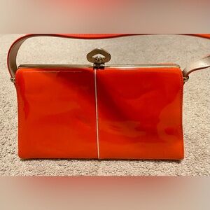 1960's Vintage Orange Patent Frame Purse
