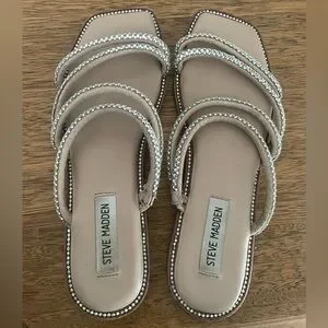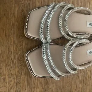 Chic Steve Madden sandals with sparkling silver straps. Perfect for any occasion.