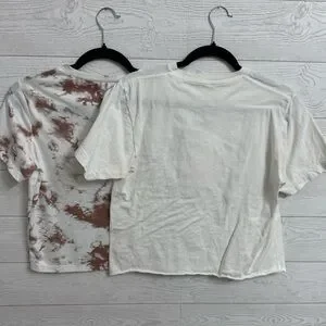 Pair Of Women’s White Cropped Short Sleeve Tee Shirts. Size S