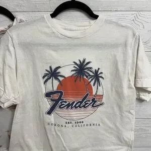 FENDER - White with blue & orange “FENDER” on front. Size S S2S 16” P2P 20” L 21” Like new condition. See pictures for details and normal wear and tear.