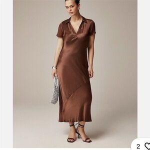 Short sleeve maxi dress in luster crepe. Beautiful silly brown dress with an amazing drape. Never worn. 100% viscose