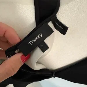 Chic black mini dress by Theory. Sleeveless with a modern silhouette. Ideal for any event.