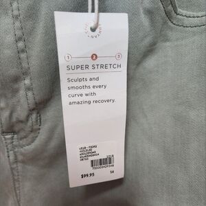 These Lane Bryant jeans feature a sleek skinny fit in a modern gray hue, enhanced by a stylish distressed finish for an edgy, casual look.