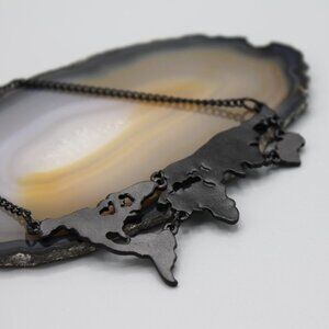 Necklace jewelry Earth globe world black tone with chain travel adventure new