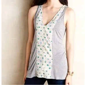 PORRIDGE Anthropologie Floral Mixed Media Tank Top Boho Festival Size S & M