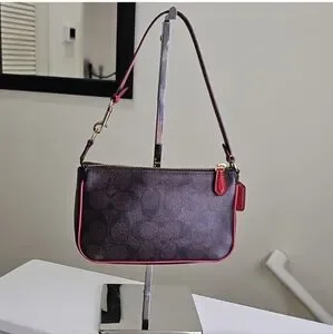 COACH C3308 Red/Gold Nolita 19 In Signature Canvas Excellent Like New Condition
