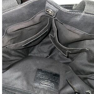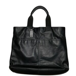 The Coach Black Tote is a sophisticated accessory with a structured design and smooth leather finish.