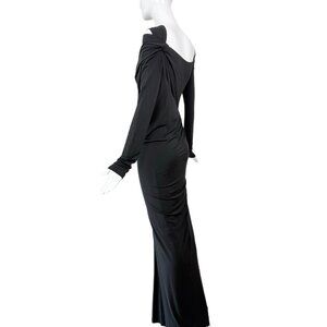 DONNA KARAN black long sleeve maxi dress evening gown ruched cut out