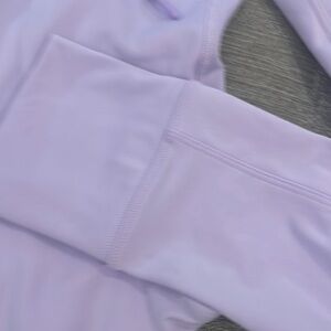 Soft lavender leggings with drawstring waist. Features side pockets. Comfortable and stylish.