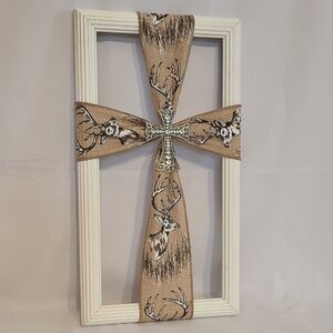 Frame Cross Art Hunting White Silver Cross Handmade Large
