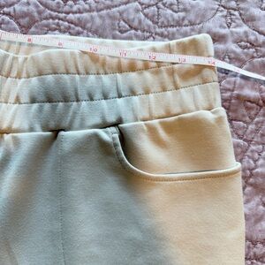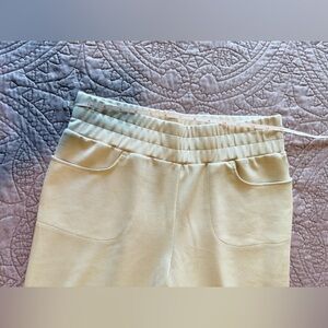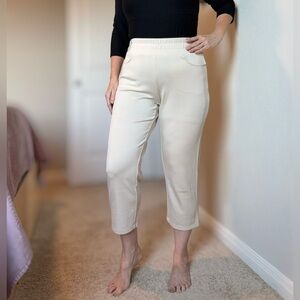 Elegant cream capris with a comfortable fit. Perfect for everyday style. Super soft Scuba knit. Like new condition. See photos for lay flat measurements.