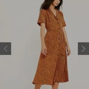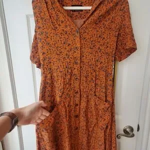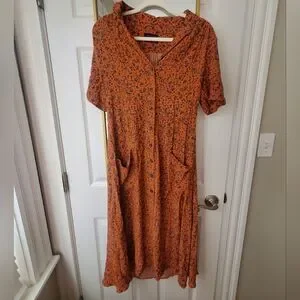 Chic orange dress with floral pattern. Short sleeves. Button-down front. Perfect for casual outings. Beautiful dress , didn’t get to wear it.