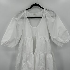 ARITZIA Wilfred White Fantasy Taffeta Crepe Tiered Baby Doll Mini Dress Small