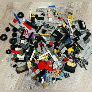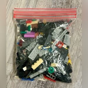 0.697 lbs. Net weight of small Lego bricks. Various parts and pieces. There are