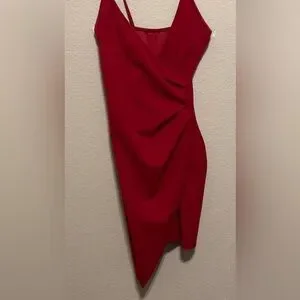 SHEIN V-Neck Body wrap Asymmetrical Dress Sz Small Red.