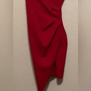This elegant red dress is perfect for any occasion. Its sleek design offers a timeless look that is both stylish and versatile. Ideal for evening events or a night out. a plunging V-neckline and a wrap-style bodice, made from smooth and stretchy fabric, ending above the knee. Please see all pictures the dress has been gently worn and in like new condition. Thank you for shopping my closet.