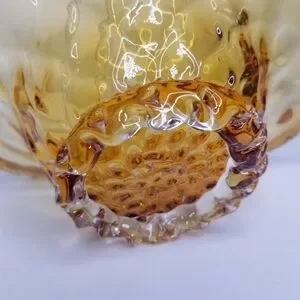 Murano Style Hand Blown Amber Glass Infused Gold Flake Loop Handle Basket