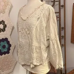 Elevate your style with this elegant cream eyelet lace top. Perfect for any occasion, this top offers a blend of comfort and sophistication.