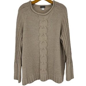 Venus Beige Loose Chunky Cable Knit Soft Chenille Sweater Rolled Crewneck SZ M