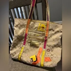 This bag has been well loved. The graffiti print has all flaked off. And there are a few other blemishes in the bag. Straps do have some stains. Bag was recently cleaned but someone may be able to get the other stains out that didn’t come out. This bag is a used bag but has tons of life left. No major rips or tears. Price is firm!!