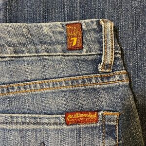 7 For All Mankind jeans, women’s bootcut jeans, distressed denim, size 30 jeans, blue wash jeans, premium denim, designer jeans, casual denim, classic jeans, 7FAM bootcut