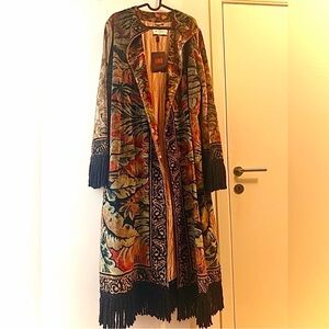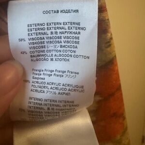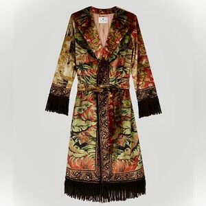 Elegant Etro cape featuring a vibrant floral pattern. Includes fringe detailing. Perfect for adding a statement to any outfit. Italian size 46 - XL
