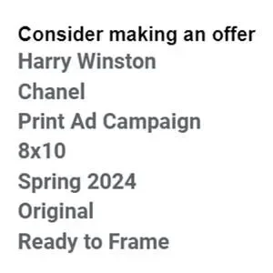 Harry Winston & Chanel Print Ad Campaign Spring 2024 Original Ready to Frame 8x10
