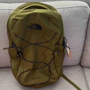 Sleek and functional backpack by The North Face. Olive green color with black accents. Ideal for everyday use.