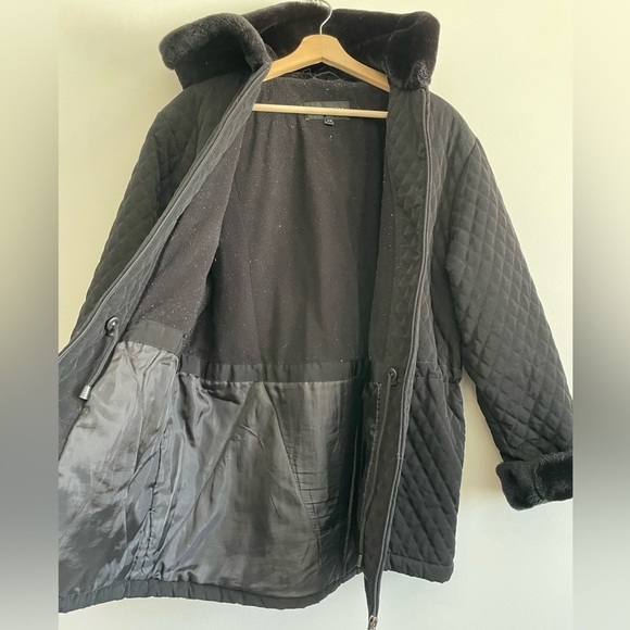 Vintage Fennelli Black Quilted Style Coat with Fur Trim Sleeves and Hood