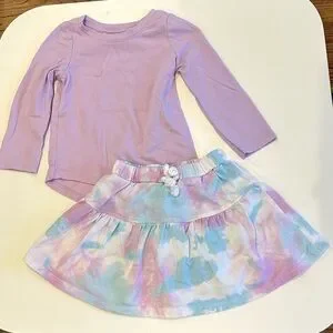 Five adorable pieces for 2T girl! Plaid dress and woodland creatures dress never worn! Garanimals skirt has built in shorts for endless play.