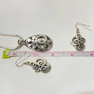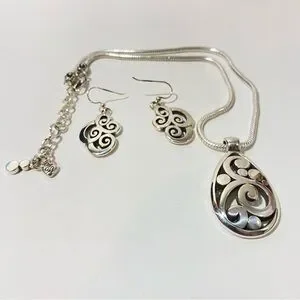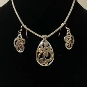 Brighton Contempo necklace and earrings. Pre-owned with normal surface wear to silver finish. See all photos. Necklace is approximately 16”- 18”.