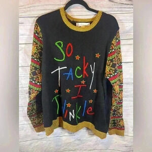 Get into the Christmas spirit with this festive So Tacky I Twinkle Long Sleeve Knit Christmas Sweater from Jolly Sweaters. The sweater features a crew neckline and pullover style, perfect for any holiday occasion. The multicolor design and tacky twinkle details add a touch of fun to your wardrobe.