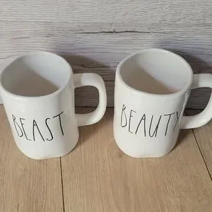 Rae Dunn Cream 'Beauty' and 'Beast' Mugs