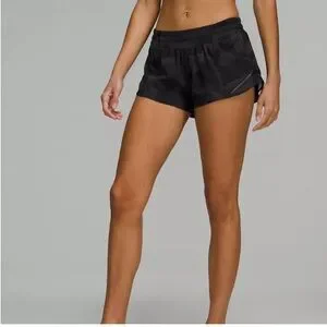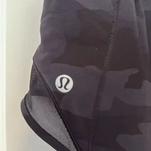 Like NEW Lululemon Hotty Hot Deep Coal Black Camo 2.5” low rise Shorts Size 4