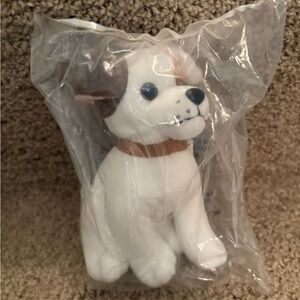 Adorable plush dog toy in white and brown. Perfect for your pet's playtime. Soft and cuddly design. NWT!