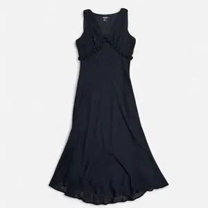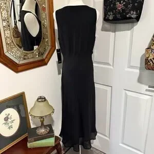 Vintage Y2K Karen Kane black silk rosette embellished beaded plunge neckline sleeveless dark fairy maxi dress - Size Large, see measurements below!