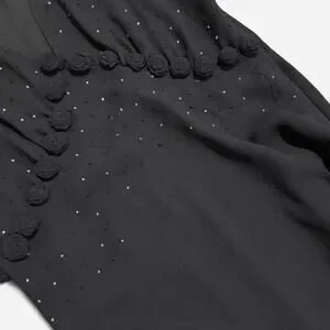 NWT VTG Y2K Karen Kane Black Silk Rosette Beaded Plunge Dark Fairy Maxi Dress L