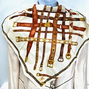 Men or women Vintage MCM mini scarf handkerchief is a stylish accessory made of cotton with a unique belts logo design. This square scarf, measuring 21" in length and 21" width, is a versatile piece that can be worn in various ways to add a touch of sophistication to any outfit.